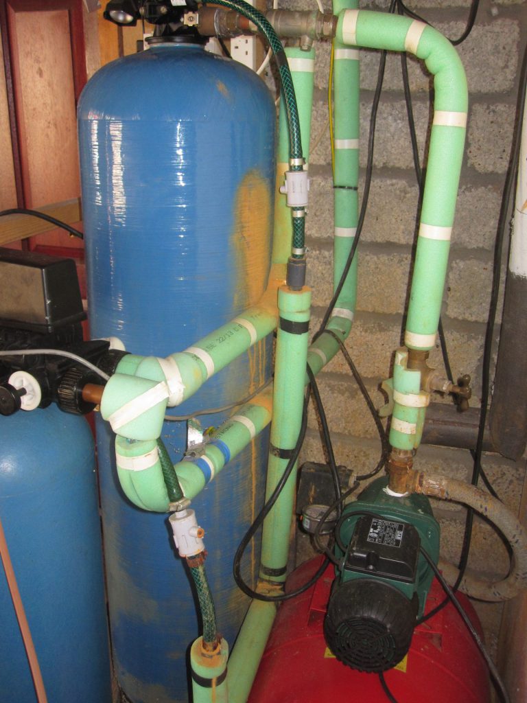 When a drop in pressure is detected in the property the Jet pump runs and the water passes through the iron removal filter and water softener.
